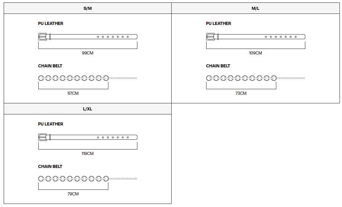 BELT SIZE GUIDE CM